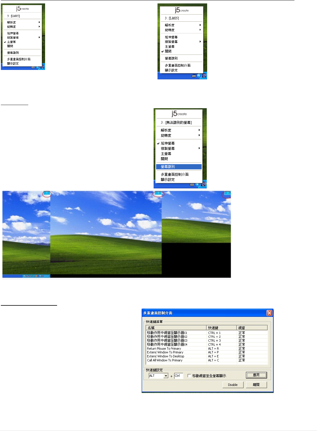 搭配多螢幕控制面版設定及快捷鍵的使用時,協