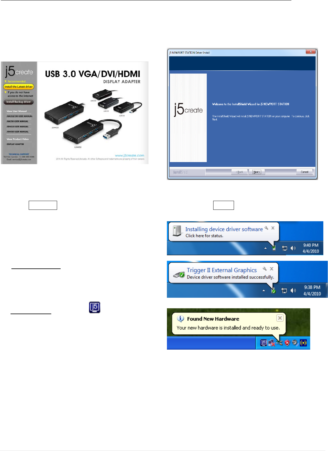 The display functions of the USB3.0 Multi-Adapter will be activated after the computer has