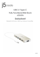 USB 3.1 Type-C Fully Functional Mini Dock Datasheet Limited Warranty j5create offers a limited 1-year warranty. User’s wear & tear damage is not included. The user shall call or email j5create customer service with the defect information of the product and obtain a return authorization number. Users are responsible for one way return freight cost and we will take care of one way freight back.