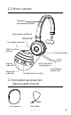 ENGLISH 2.2 Mono variant Magnetic microphone groove Adjustable headband Volume up Busylight indicator Multi-function button Battery indicator Bluetooth indicator Volume down USB connect & charging port Microphone boom-arm On/off/connect switch 2.