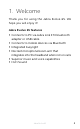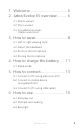2.1 Stereo variant 2.2 Mono variant 2.3 Included accessories (stereo and mono) ENGLISH 1. Welcome..........................................5 2. Jabra Evolve 65 overview............6 3. How to wear....................................8 3.1 Left or right wearing style 3.2 Adjust the headband 3.3 Position the microphone 3.4 Storing the microphone 4. How to charge the battery....... 11 4.1 Sleep mode 5. How to connect........................... 13 5.1 Connect to PC (using jabra Link 370) 5.