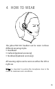 english 4. how to wear The Jabra PRO 925 headset can be worn in three different wearing-styles: Headband Earhook (optional accessory) Neckband (optional accessory) All wearing-styles can be worn on either the left or right ear. NOTE: It is important to position the microphone close to the mouth for maximum noise cancellation.