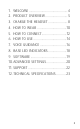 jabra solemate mini english 1. welcome........................................... 4 2. product OVERVIEW......................... 5 3. Charge the headset...................... 8 4. how to wear.................................10 5. how to connect............................12 6. how to use.....................................14 7. voice guidance..............................16 8. base led indicators.....................18 9. software........................................19 10. ADVANCED SETTINGS...........