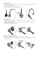 ENGLISH Attaching the headband 1. Align the headset and the headband wearing-style attachment, as illustrated, and press firmly together until they click into place (snap-to-click). 2. Rotate the microphone boom arm for left or right ear use. 3. Adjust the length of the headband to fit snugly against the head. CLICK Attaching the earhook 1. Assemble the earhook wearing-style attachment for left or right ear use. If necessary, remove the earbud and replace with another size for best fit. 2.