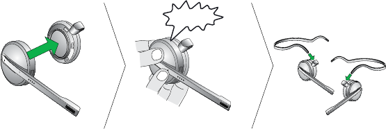 1. Decide on left or right ear use, and assemble the neckband attachment, as illustrated.