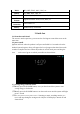6.12.3 Exit: Return to the main application Note: All installed applications can be displayed in the menu list. These applications may include games, messaging, Internet browsers, players of content, tools, etc. 6.13 PHOTOS AND VIDEOS The tablet has rear and a front camera; you can take photos and record videos, etc. 2 Press on the tab of the application to see all tools. Then select photo or Video settings according to desired.