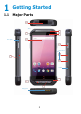 Texture MT11010 (PC) 17 TPU Texture MT11010 (PC) 18 9 11 10 19 20 1 Front cover 11 Battery locker 2 Front deco receiver 12 Power button 3 Front camera 13 Volume button 4 Front deco speaker 14 Scan button 5 Touch screen 15 Sos button 6 Keypad 16 Scan window 7 Keypad pad 17 Camera window 8 Function deco 18 Flash window 9 Rear housing 19 Cap screw 10 Battery cover 20 Hand strap 4
