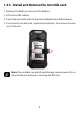 1.3.5 Install and Remove the microSD card 1. Remove the Battery Cover and the Battery. 2. Lift up the SIM rubber. 3. Insert the microSD card into the slot (Gold plate should face down). 4. To remove the microSD card, repeat step1 and step2, then remove the card out of the slot. Note: To avoid data loss and SD card damage, please power off your phone before inserting or removing the SD card.
