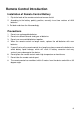 Remote Control Introduction Installation of Remote Control Battery 1. Flip to the back of the remote control and remove the lid. 2. According to the battery polarity position, correctly insert two sections of AAA batteries. 3. Put back and close the lid accordingly. Precautions 1. 2. 3. 4. 5. 6. 7. 8. Do not use rechargeable batteries. Do not mix different brands and types of batteries. Do not use new and old batteries together.