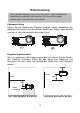 Installation Standardeinstellung (Projektion) Bitte beachten Sie die folgenden Angaben. Passen Sie die Bildgröße und Entfernung an (von der Linse bis zur Leinwand). Screen Size Distance (4:3) Distance (16:9) 127 cm (50") 1.8 m 1.9 m 152 cm (60") 2.1 m 2.25 m 183 cm (72") 2.5 m 2.65 m Die Angaben können aufgrund der Bildgröße, je nach Entfernung zwischen Projektor und Leinwand, um ca. 3% abweichen. Wenn der Abstand weniger als 2 Meter oder mehr als 5 Meter beträgt, kann das Bild verzerrt werden.