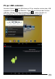PC per USB verbinden Schließ en Sie das Gerät per USB-Kabel am PC an; daraufhin erscheint das „USB verbunden“-Symbol am Bildschirm. Tippen Sie zum Aufrufen des Fensters USB Mass Storage (USB-Massenspeicher) auf , wählen Sie dann als PC-Verbindung „Turn on USB storage (USB-Speicher einschalten)“. DE/1403.