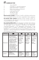 IT MANUALE D’USO 1. Tasto ON/OFF 2. Play/pausa + risposta/riaggancio 3. Brano precedente + volume su 4. Brano successivo + volume giù 5. Presa chiavetta USB 6. Presa per ricarica 7. Slot per TF card 8. Connettore AUX Ricarica dello speaker: inserire il cavetto in dotazione nella presa (6), si accenderà il led rosso. A carica completata il led si spegnerà.