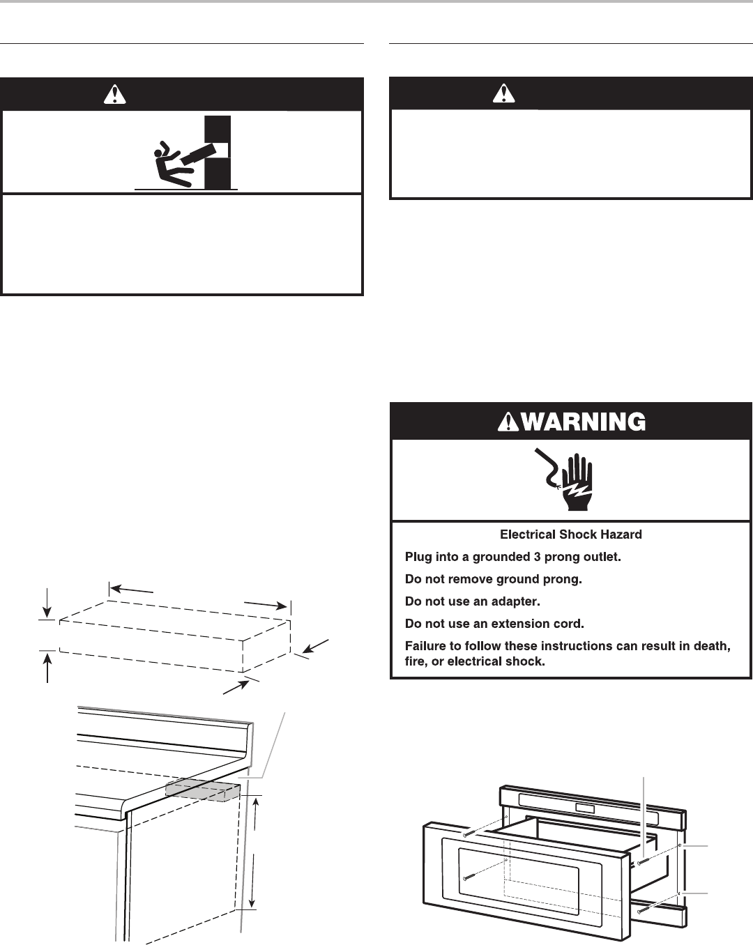 3.  Open the Microwave Drawer, and mark the four holes in the