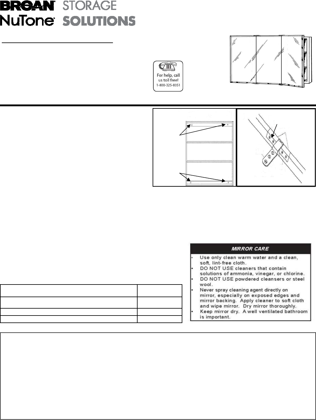Broan-NuTone Storage Solutions, 501 S. Wilhite Street, Cleburne, TX 76031 www.nutone.com (1-800-325-8351)