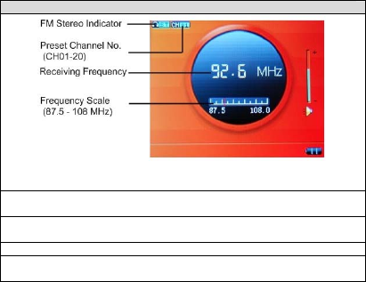 Frequency scale (87.5-108MHz): the red pointer on the frequency