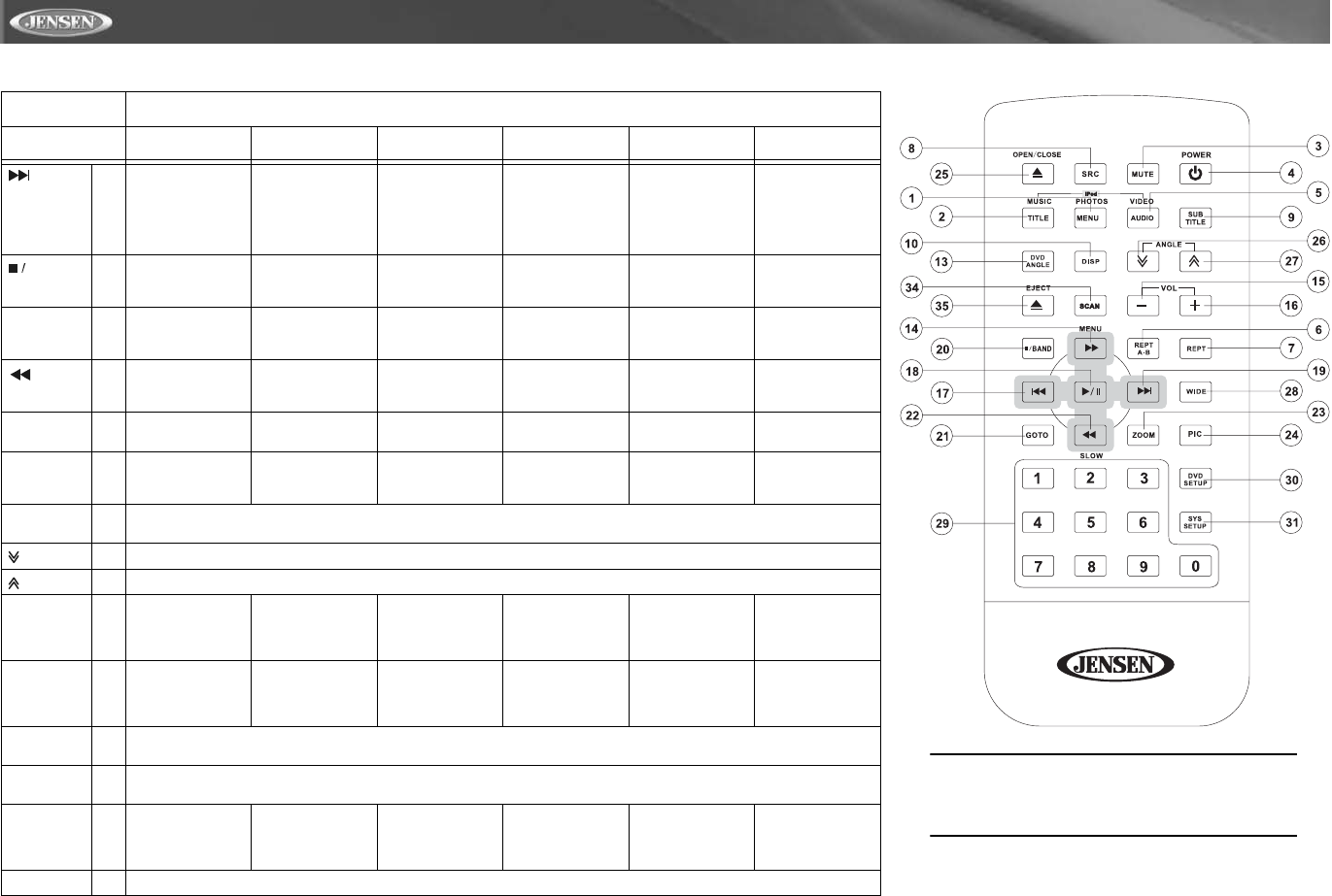 Nom/Ref # DVD VCD AM/FM CD/MP3 XM iPod