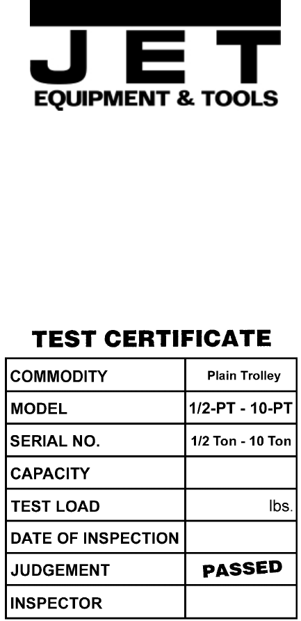 JET PT Series Adjustable Push Trolley — 1-Ton Capacity