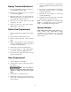 . Use the hose guard and hose stop from the old hose and place in the same position on the new hose. 6. Feed new hose through guide and opening in drum, and connect to swivel. Use thread sealant on the threads. 7. Re-install two hose clamps, on inside and outside of drum flange. 8. Carefully release the drum latch, and slowly allow the hose to wind onto the reel. Spring Tension Adjustment 1. Pull out approximately 6 feet, or 2 meters of hose and allow the drum to latch. 2.