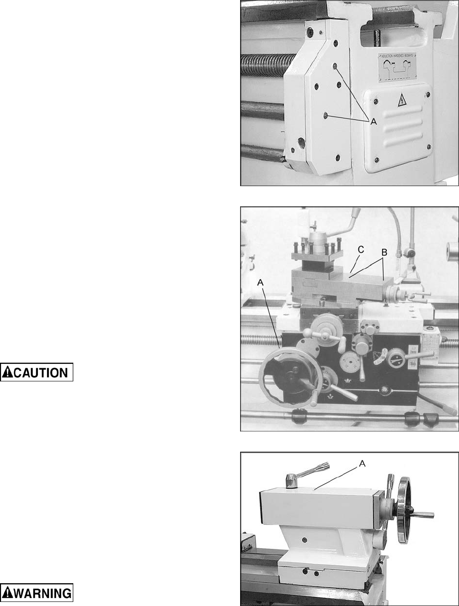 the rear base of the lathe. Make sure