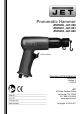 Troubleshooting JAT-900/901/902 Pneumatic Hammer Any disassembly of the tool should be done by qualified service personnel. For problems not addressed below, contact JET technical service at 800-274-6846. Problem Possible cause Remedy Tool will not start. Air valve closed or obstructed. Open valve; clear any obstructions. Dirt or gum deposits on components. Flush tool with gum solvent. If problem persists, disassemble, clean and lubricate internal parts. Internal components are worn.
