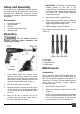3. Re-connect air. Run air hammer at low throttle without load for a few seconds to distribute the oil throughout tool. 4. When finished operating air hammer, disconnect air hose. Wipe off housing with a dry cloth. Place 4 or 5 drops of air tool oil into air inlet; re-connect air and run the tool for a few seconds to distribute the oil. Disconnect air. Storage Avoid storing the air hammer in very humid locations which promotes rusting of internal mechanisms.