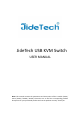 JideTech USB KVM Switch USER MANUAL Note: This manual contains the parameters and instructions of the 5 models (21UA / 41UA / 94H2 / 9138H / 9116H). Please be sure to find the corresponding product description for your purchased product and use the product correctly. Thank you.