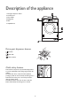 Description of the appliance 1 Detergent dispenser drawer 2 Control panel 3 Door handle 4 Rating plate 5 Filter 6 Adjustable feet Detergent dispenser drawer Prewash Main wash Fabric softener Child safety feature This machine incorporates a special child safety feature to prevent small children from being trapped inside the machine. To activate this device, rotate the button (without pressing it) inside the door clockwise until the groove is horizontal. If necessary use a coin.