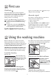 Contents For the User For the Installer Important Safety Information 2-3 Installation Child safety 2 2 Description of the Appliance 5 Detergent dispenser drawer Child safety feature 5 5 The Control Panel Before the First use Using the washing machine Load the laundry Measure out the detergent Measure out the fabric softener Switch the machine on Select the desired programme/temperature Select the spin speed or the “None” option Select the desired options Select the “Delay start” Start the programm