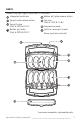 PIEZAS A2 Botón/luz de encendido Pestillo de para mantener la parrilla cerrada A3 Botón de apertura de la plancha superior de la parrilla Botón de apertura de la plancha inferior de la parrilla Johnsonville® Sizzling Sausage Grill™ 25