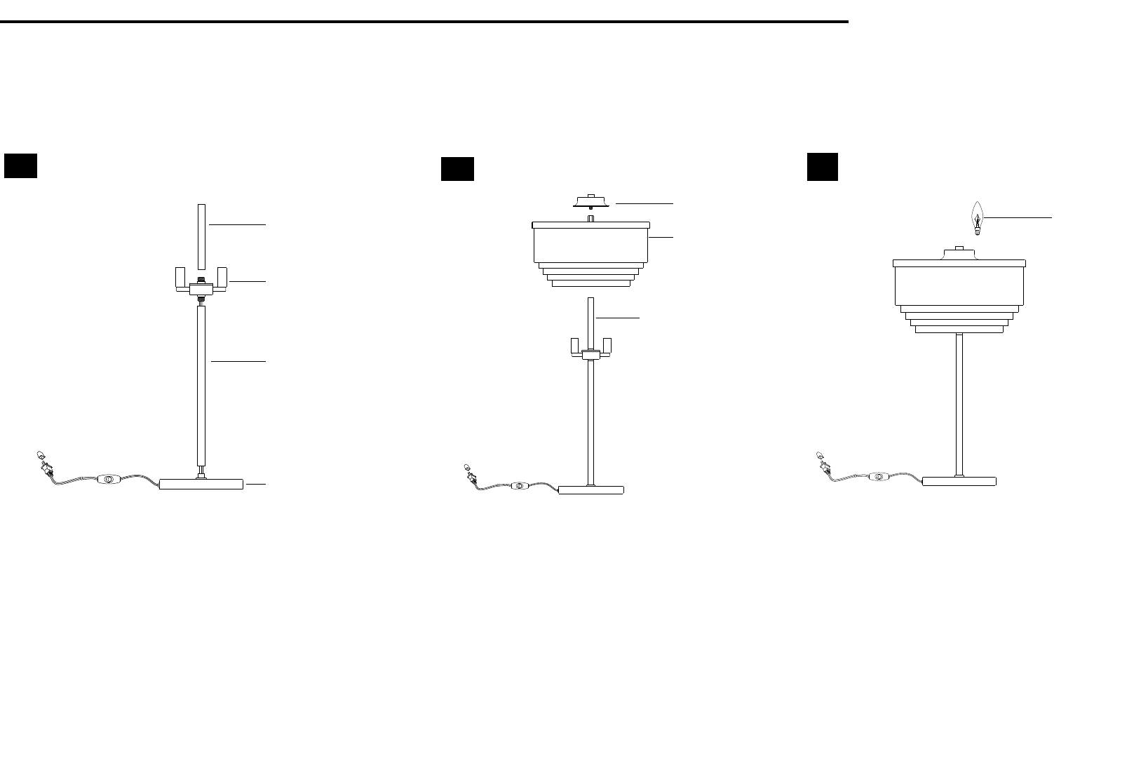 Insert the Long Tube(F) into the Base(G) and rotate it till tight. Place the Cap(A) onto the Shade(B) and rotate it if everything is stable.