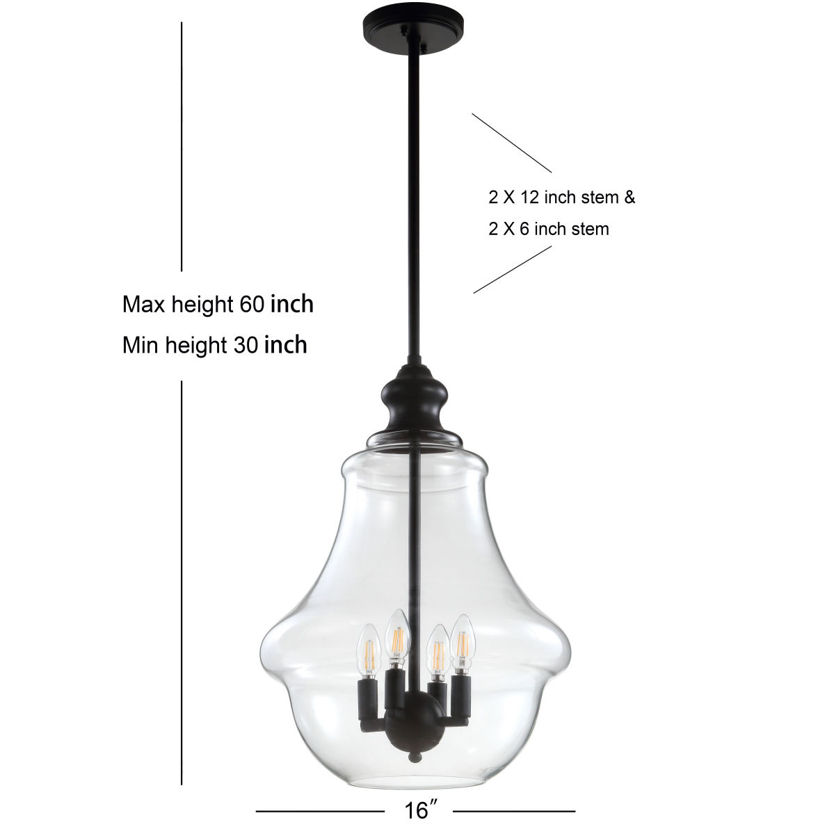 Adam 16 in. 4-Light Oil Rubbed Bronze Adjustable Metal/Glass LED Pendant