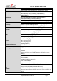 Wireless Security Channel Doc No: WG6611-00-DTS-D08 WPAK2-AES(802.11i(WPA,WP2)) OPEN,shared key,and pair-wise key authentication services Channel 1~14 802.11b(DSSS): CCK(11, 5.5Mbps), DQPSK(2Mbps), DBPSK(1Mbps); Modulation 802.11g(OFDM): BPSK(9,6Mbps), QPSK(18,12Mbps), 16QAM(36,24Mbps), 64QAM(54,48Mbps); 802.11n(OFDM): BPSK, QPSK, 16QAM, 64QAM(150Mbps) 150Mbps: Typical - 64dBm @ 10% PER Sensitivity 54Mbps: Typical - 65dBm @ 10% PER 11Mbps: Typical - 76dBm @ 8% PER 11Mbps: 802.