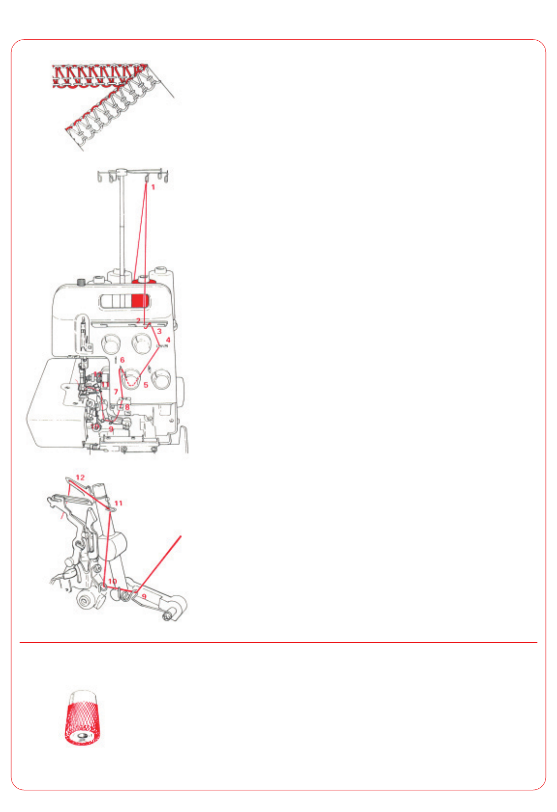 relevé. Enfiler le fil dans le chas du boucleur supérieur.