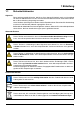 1 Einleitung 1.1 Sicherheitshinweise Allgemein Diese Anleitung enthält Hinweise, die Sie zu Ihrer eigenen Sicherheit sowie zur Vermeidung von Sachschäden beachten müssen. Diese Hinweise sind durch Zeichen unterstützt und werden in dieser Anleitung wie gezeigt verwendet. Lesen Sie diese Anleitung, bevor Sie das Gerät in Betrieb nehmen. Bewahren Sie die Anleitung an einem für alle Benutzer jederzeit zugänglichen Platz auf.