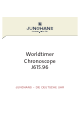 4.4.1 Manual sychronisation (transmitter call) Your Junghans Worldtimer Chronoscope can also be synchronised manually, via the so-called transmitter call. To do this, press the T2 ”SET” button for T2 > 3 seconds in the reception indicator mode. T1 The minute hand begins to move and stops at the 12.00 o'clock position. During this reception phase the LC display is switched off (no display). Please keep the watch still during reception or put it down.