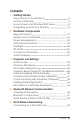 Contents 1 Getting Started The Anatomy of the Archer 2 Perform Initial Tasks Home Screen and Windows Start Menu Navigating Around Your Archer 2 2 3 8 9 2 Hardware Components Keypad Features Display and Touchscreen Power Management LED Activity Indicators Flashlight SD Cards Connector I/O Module Audio Features 3 Programs and Settings 12 16 22 24 25 26 26 27 Home Screen Windows Start Menu On-Screen Keyboard Suspend, Reset, Power Off, and Restore Defaults Subdued Lighting (Tactical) Mode Compass and Acc
