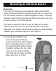 Mounting an External Device Overview The Field PC features a convenient cable channel that hides cables attached to an external device you mount on the Universal, Optical, or Data Acquisition Caps. External devices might include an external RS-232 sensor (such as a GPS receiver) or a USB device. This section explains how to insert a cable in the cable channel and how to mount the external device onto the extended cap. These instructions assume you have already installed your extended cap onto the Field PC.