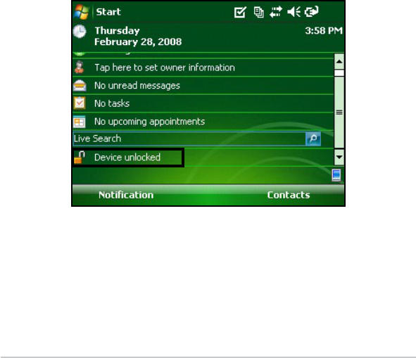 To lock the device, simply tap on the words “Device unlocked.”