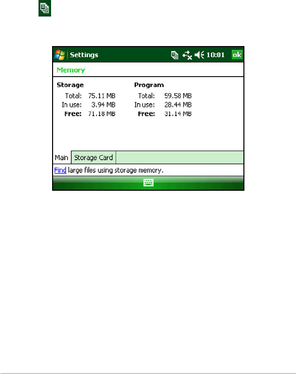 Memory. Tap the Main tab. Available memory for storage and
