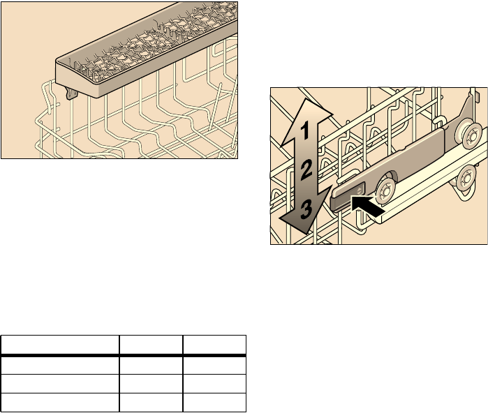 - ■ Messer und andere Utensilien mit scharfen Spitzen müssen im Besteckkorb mit den Spitzen nach unten oder in der Messerablage* in waagrechter Lage eingeordnet werden.