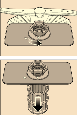 - 2. Siebzylinder wie abgebildet losdrehen und Siebsystem herausnehmen.