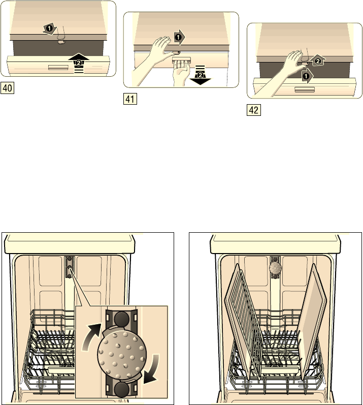 - 4. Bevor Sie den Korb wieder einschieben, stellen Sie sicher, dass er auf beiden Seiten auf gleicher Höhe liegt. Sonst lässt sich die Gerätetür nicht schließen und der obere Sprüharm erhält keine Verbindung zum Wasserkreislauf.