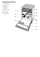 Gerätebeschreibung 1. Geschirrkorbarretierung 2. Härtebereichsschalter 3. Salzbehälter 4. Behälter für Reiniger 5. Bedienblende 6. Typenschild 7. Behälter für Klarspüler 8. Siebe 9. Unterer Sprüharm 10. Oberer Sprüharm 11.