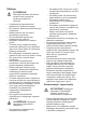 • Jeśli szyba pęknie, należy ją niezwłocznie wymienić. Należy skontaktować się z autoryzowanym centrum serwisowym. • Przy zdejmowaniu drzwi urządzenia należy zachować ostrożność. Drzwi są ciężkie! • Aby zapobiec uszkodzeniu powierzchni urządzenia, należy regularnie ją czyścić. • Czyścić urządzenie za pomocą wilgotnej szmatki. Stosować wyłącznie obojętne środki czyszczące. Nie używać żadnych produktów ściernych, myjek do szorowania, rozpuszczalników ani metalowych przedmiotów.