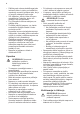Zelenjava Jed Temperatura (°C) Čas (h) Fižol 60 - 70 Paprika Jušna zelenja‐ va Položaj rešetk 1 položaj 2 položaja 6-8 3 1/4 60 - 70 5-6 3 1/4 60 - 70 5-6 3 1/4 Gobe 50 - 60 6-8 3 1/4 Zelišča 40 - 50 2-3 3 1/4 Temperatura (°C) Čas (h) Položaj rešetk Slive 60 - 70 Marelice Sadje Jed 1 položaj 2 položaja 8 - 10 3 1/4 60 - 70 8 - 10 3 1/4 Jabolčni krhlji 60 - 70 6-8 3 1/4 Hruške 60 - 70 6-9 3 1/4 VZDRŽEVANJE IN ČIŠČENJE OPOZORILO! Oglejte si poglavja o