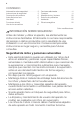 Fruta Alimento Temperatura (°C) Tiempo (h) Ciruelas 60 - 70 Albaricoques Posición de la parrilla 1 posición 2 posiciones 8 - 10 3 1/4 60 - 70 8 - 10 3 1/4 Manzana en rodajas 60 - 70 6-8 3 1/4 Peras 60 - 70 6-9 3 1/4 MANTENIMIENTO Y LIMPIEZA ADVERTENCIA! Consulte los capítulos sobre seguridad. Notas sobre la limpieza • Limpie la parte delantera del horno con un paño suave humedecido en agua templada y jabón neutro.