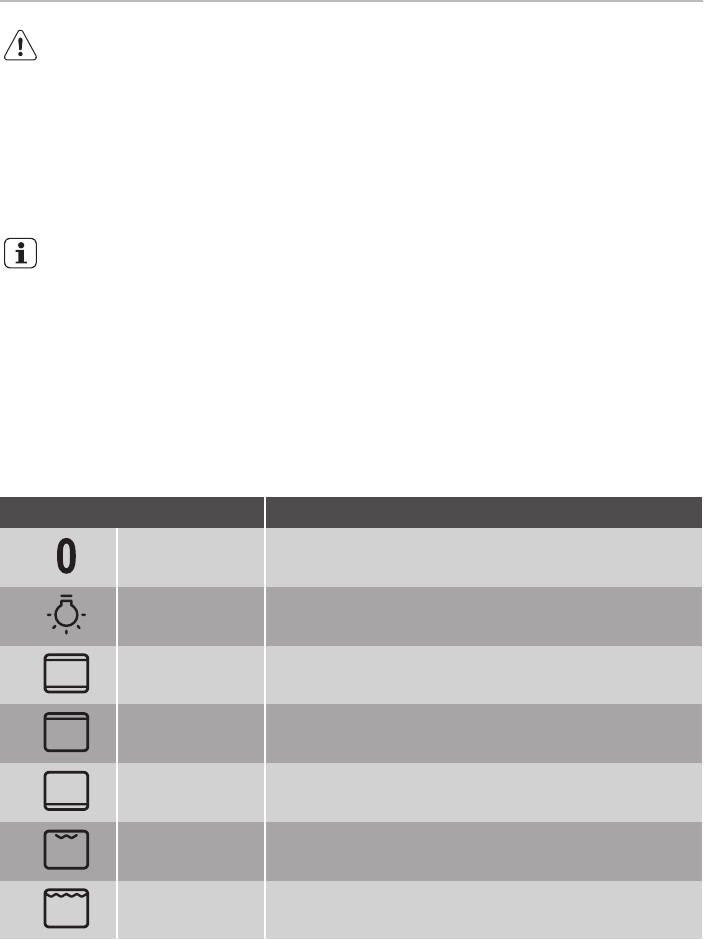 1. Turn the knob for the oven functions to