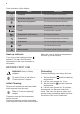 Other indicators of the display: Symbol / / Name Description Functions You can choose an oven function. Automatic programme You can choose an automatic programme. My favourite programme The favourite programme operates. kg / g An automatic programme with a weight in‐ put operates. h / min A clock function operates. Temperature / Fast heat up The function operates. Temperature The current temperature is indicated. Temperature You can change the temperature.