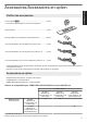 Accessoires/Accessoires en option Pour commencer Vérifier les accessoires Couvre-objectif D .................................................................. 1 pièce * Il est fixé à l’unité principale au moment de l’expédition. . Télécommande ............................................................................ 1 pièce . Piles type AAA (pour confirmation de fonctionnement) .............. 2 pièces . Cordon d’alimentation (pour les États-Unis) (environ 2 m) ........... 1 pièce .