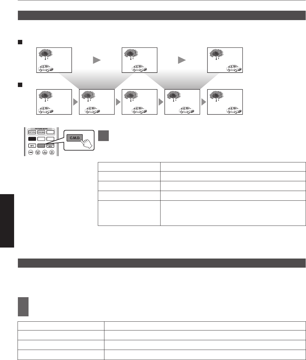 Durch Drücken der Taste [C.M.D.] wird der Modus jeweils in der folgenden Reihenfolge